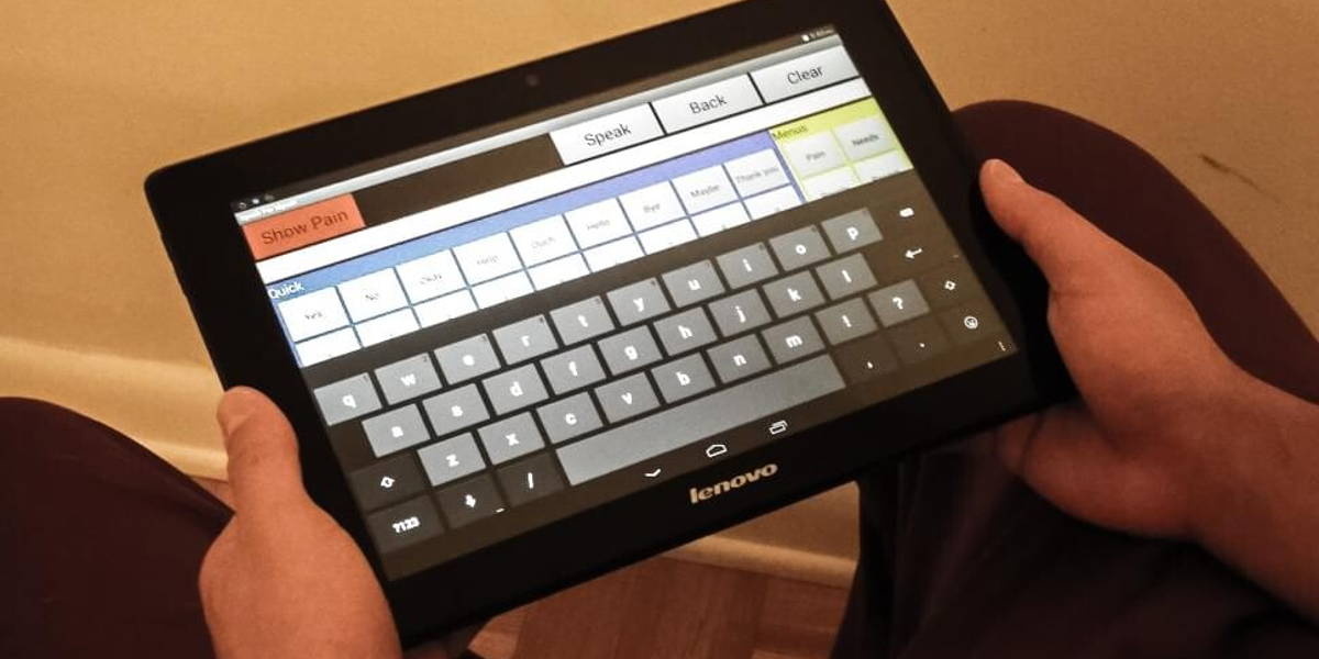 The Speak for Myself app was thought out by Rebecca Koszalinski, R.N., Ph.D. The app is used on a tablet and offers an easily controlled pain scale, as well as a way to show where something hurts thanks to a graphic displaying a human body. There are also options to request to be repositioned, to ask for suctioning, and notify when one needs to empty one’s bowels.