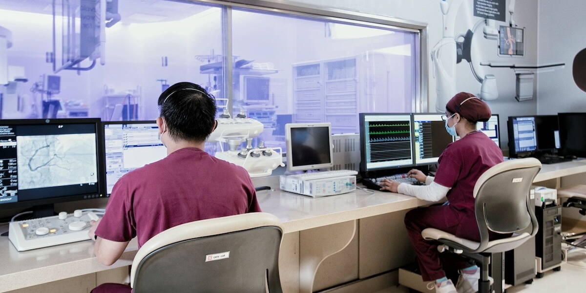 A team of healthcare professionals and engineers watches the changing parameters on the screens located on the wall – inspired by control rooms in aviation and space exploration, hospital command centers (HCCs) are centralized data hubs that accumulate real-time data across various systems within the hospital.