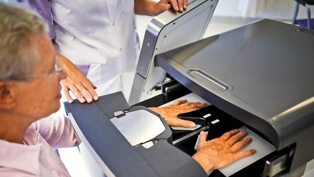 At the same time, the hands are illuminated to measure the speed and magnitude of blood pooling, an indication of inflammation. The HandScan hereby supports the rheumatologist in objectively assessing the disease activity in a fast, safe and painless way.