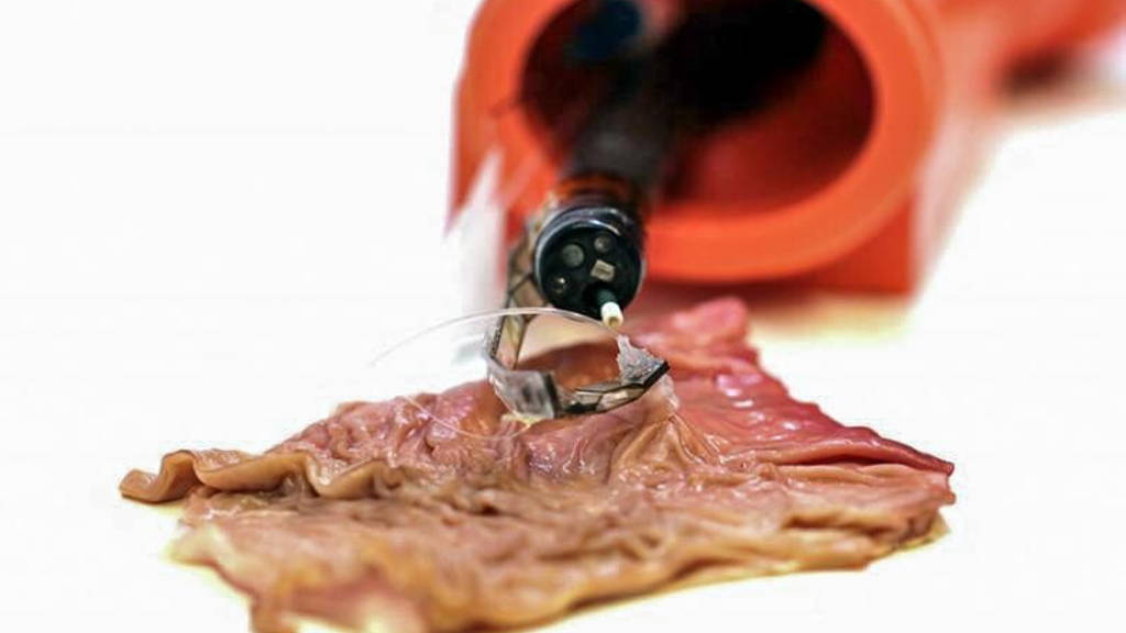 The arm is also equipped with a suction cup — inspired by octopus tentacles — to safely interact with tissue. The team tested the device ex vivo, simulating a complicated endoscopic procedure on pig tissue. The arm successfully manipulated the tissue safely.
